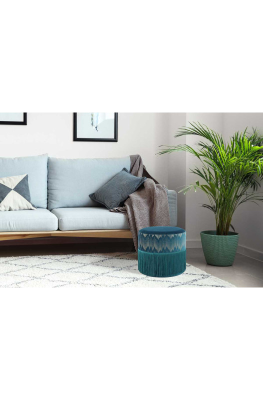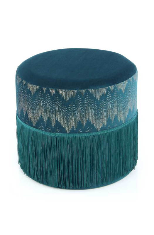 Модель выполнена в изумрудном оттенке, а в сочетании с золотым принтом и драпировкой она приобретает оригинальное звучание. Такой необычный дизайн позволяет применять пуф как в восточных, так и в других современных интерьерах.