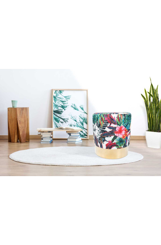 Оригинальный Nova Flower характеризуется элегантным внешним видом и оригинальным принтом. Бархатистая поверхность пуфа, а также сиденье из пенополиуретана дарит мягкость и помогает расслабиться. Особенность модели — металлическая ножка в золотом оттенке, которая идеально гармонирует с дизайном сиденья.