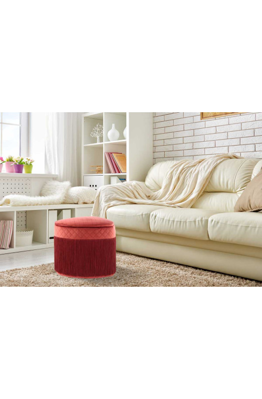 Пуф Pola Bordeaux добавит ноты романтики в дизайн комнаты. Однотонная обивка в красном оттенке и бахрома придаёт изделию игривость и оригинальность.