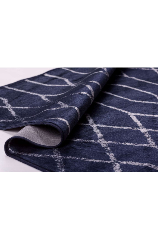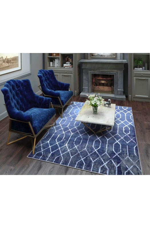 Ковёр для гостиной комнаты SOHO M822-36 прекрасно подойдёт для оригинального дизайна интерьера. Синее ковровое покрытие с элегантным геометрическим принтом, отлично оттенит скандинавские стили.