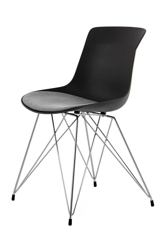 Эффектный стул Bolton Black/Grey — эффектное решение для современных дизайнерских направлений: минимализм, хай-тек, контемпорари. Изюминка этой модели — филигранно выполненные металлические ножки геометрической формы.