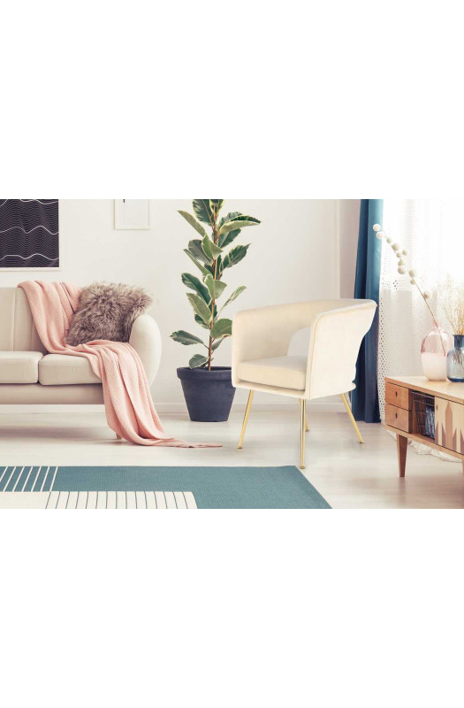 Сочетание нежной, бархатной текстуры и металлических ножек в золотом цвете выглядит эффектно и гармонично. Съёмное сиденье с наполнением из пенополиуретана создаёт ощущение комфорта и уюта.