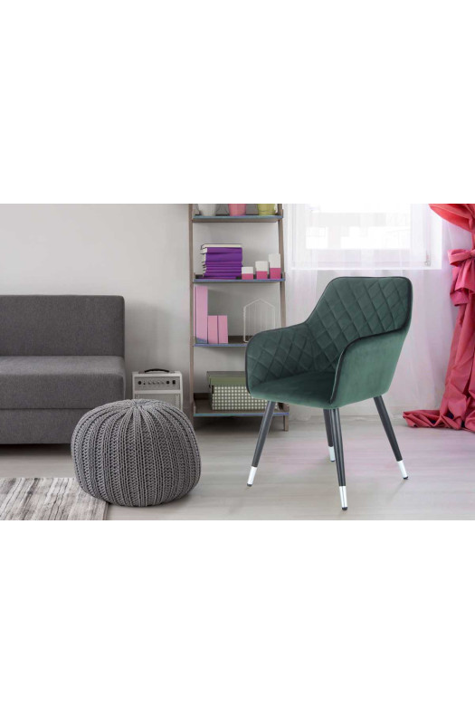 Стильное кресло Evan Dark green/Black отличное решение для создания дизайна и в современном, и в классическом стиле. Изделие выполнено в зелёном цвете. Контрастный кант придаёт ему оригинальное звучание. Устойчивые металлические ножки чёрного цвета органично завершают композицию.