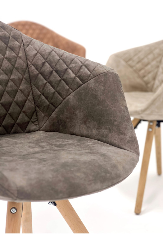 Ножки стула выполнены из натурального бука, что придаёт ему особый шарм. Для повышения устойчивости и прочности используются металлические крепления.