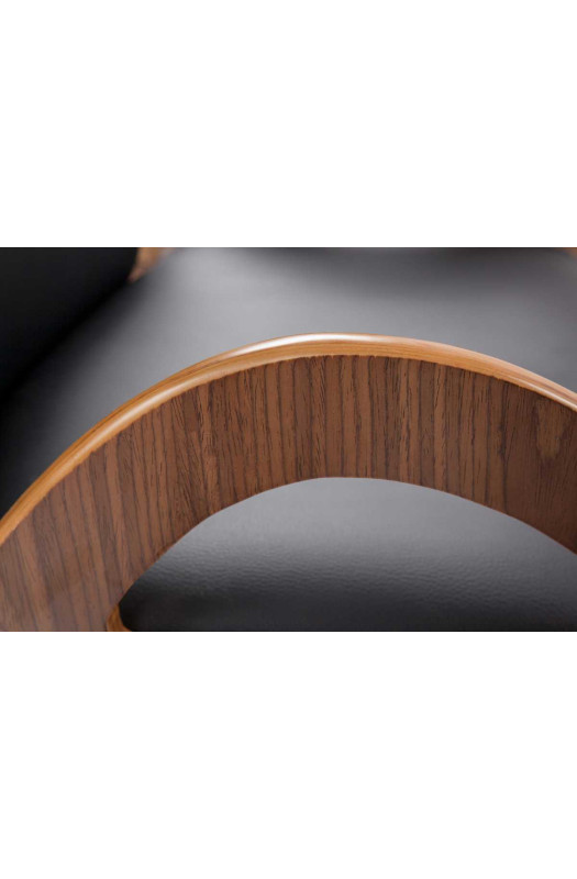 Обивка выполнена из экокожи в чёрном оттенке. Декоративные элементы из дерева и ножки в цвете хром, придают модели элегантность.