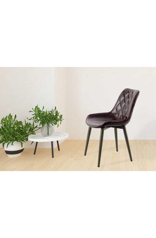 Стильный стул Marco Dark purple — оригинальный элемент для создания классического или винтажного интерьера. Насыщенный цвет в сочетании с эффектным дизайном привнесут особый шарм в стиль ретро или классику. Металлический каркас в чёрном оттенке обеспечивает отличную устойчивость и подчёркивает элегантность стула.