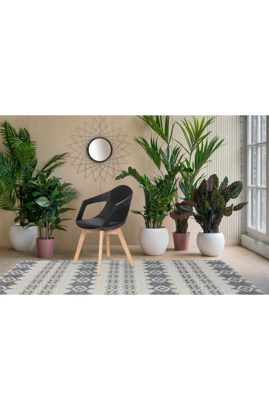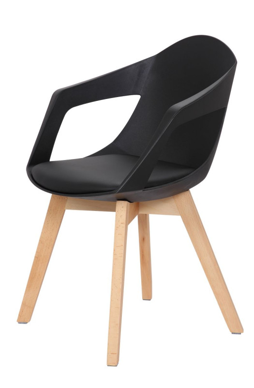 Сиденье, спинка и подлокотники выполнены из качественного полипропилена. Использование ножек из натурального дерева с металлическими элементами, придаёт изделию особый шарм.