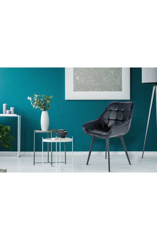 Металлические ножки в чёрном цвете гармонично дополняют дизайн и обеспечивают устойчивость, а также прочность стула.