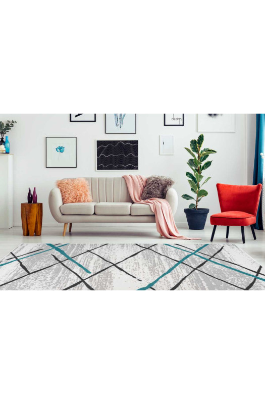Синтетический ковёр Vancouver 110 white/grey/turquoise — модель, которая создаст атмосферу комфорта в интерьере. Элегантный геометрический принт придаёт изделию оригинальность. Он прекрасно сочетается с мебелью и декором в современном стиле.
