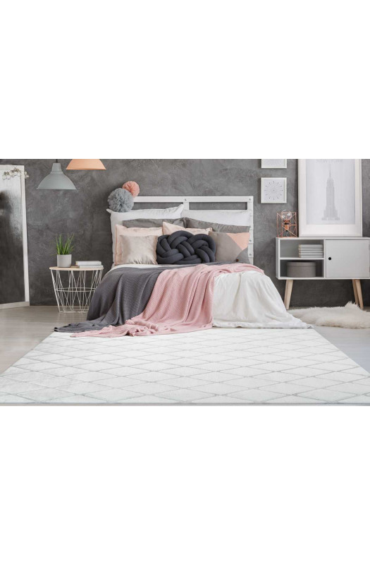 Ковровое покрытие прекрасно подойдёт для спальни, гостиной или прихожей. Vivica 225 romb придаст интерьерному решению ноты лёгкости.