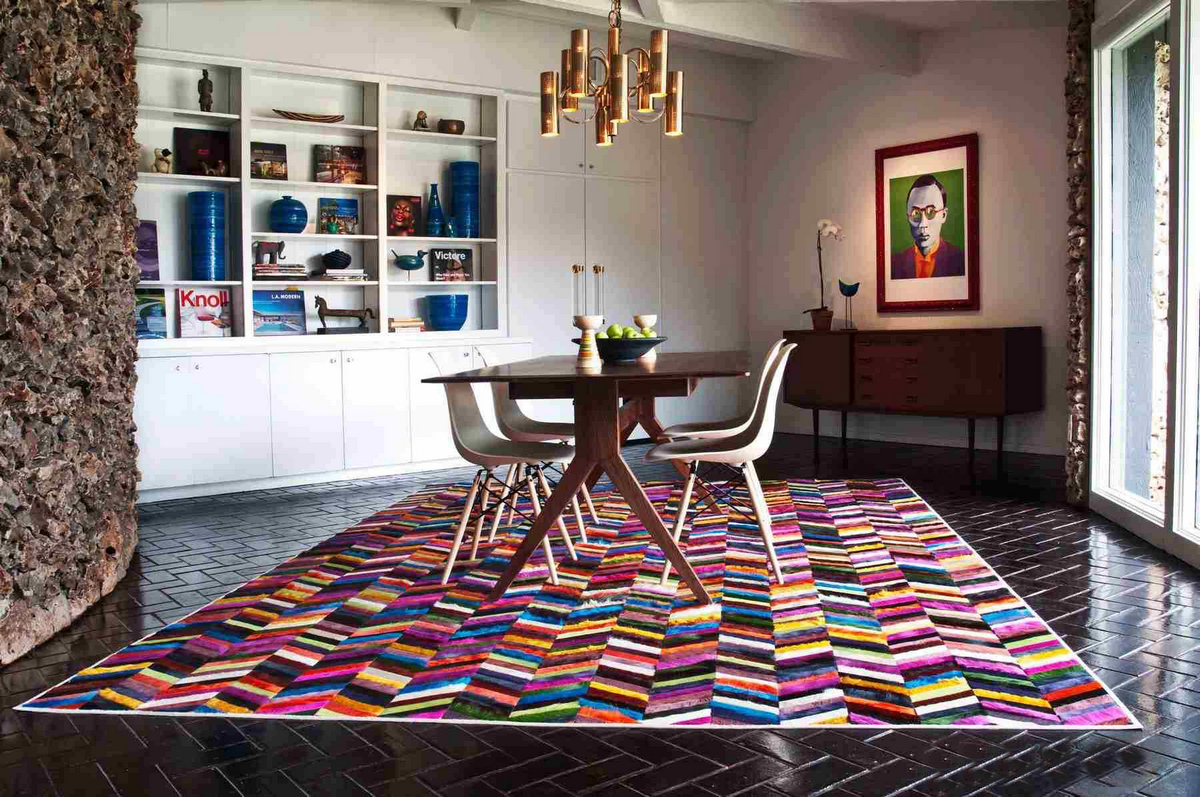 Еще одно правило заключается в подборе ковра в зависимости от цвета напольного покрытия. Если пол темный, выбирайте светлое или яркое полотно, если светлый – ковер схожей палитры.