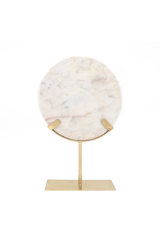 Декоративна скульптура Lenzi KM1077 Gold / White, що символізує сонце, що сходить, доповнить будь-який сучасний інтер'єр, привнесе в нього нотки шарму і унікальності. Виріб складається з металевої опори і кола, виконаного з натурального мармуру білого кольору. Висота - 39 см. P>