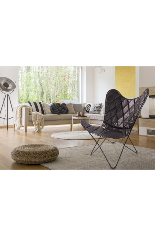 Крісло-метелик в техніці handmade Сильне крісло Gerber Black - відмінно підійде для сучасних дизайнів інтер'єру. Сидіння виготовлено з натуральної шкіри високої якості, яка ефектно виглядає на стильній рамі з металу. Декоративний кант і ромбовидна стежка надають виробу індивідуальність. Крісло з натуральної шкіри легко очищається від будь-яких забруднень. Виріб підійде для меблювання вітальні, лоджії і навіть тераси. Gerber прекрасно поєднується з або іншими декоративними елементами. * Фактичний колір меблів може відрізнятися від фото, в залежності від налаштувань монітора.