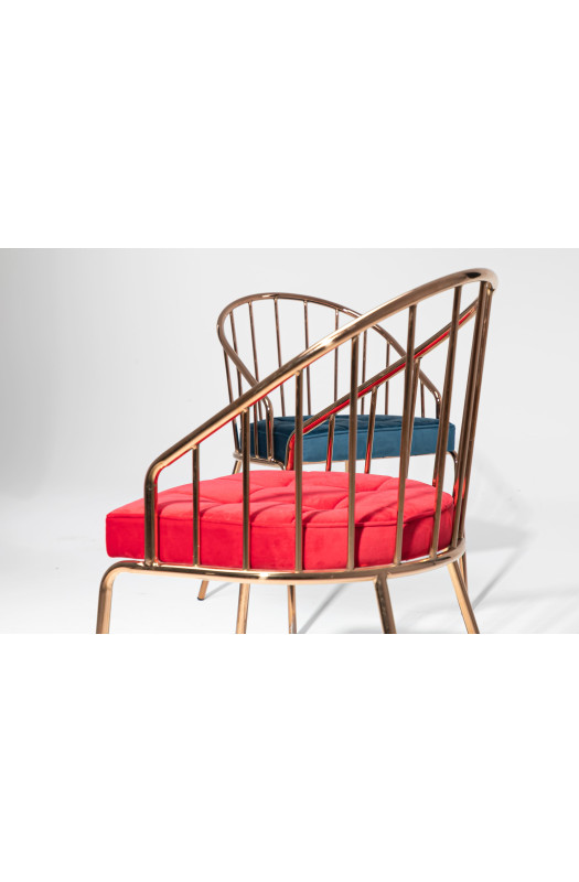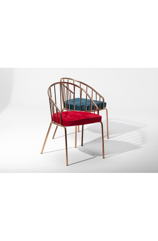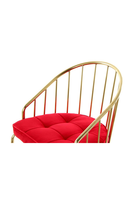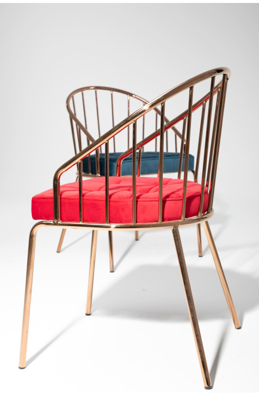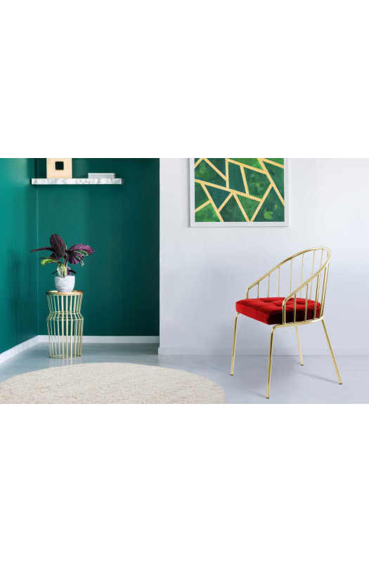 Розкішний дизайнерський стілець Palmira Red / Gold - це оригінальний стілець, який привнесе в інтер'єр ноти розкоші. Від прекрасно підійде для сучасних дизайнерських рішень, таких як лофт, хай-тек і модерн. М'яке сидіння в приємній на дотик оббивці створює відчуття комфорту і дозволяє розслабитися. Модель виконана в червоному кольорі з металевим каркасом у відтінку золото. Palmira відрізняється практичністю і зносостійкістю, тому модель сміливо можна використовувати для меблювання кухні або їдальні. * Фактичний колір меблів може відрізнятися від фото, в залежності від налаштувань монітора.