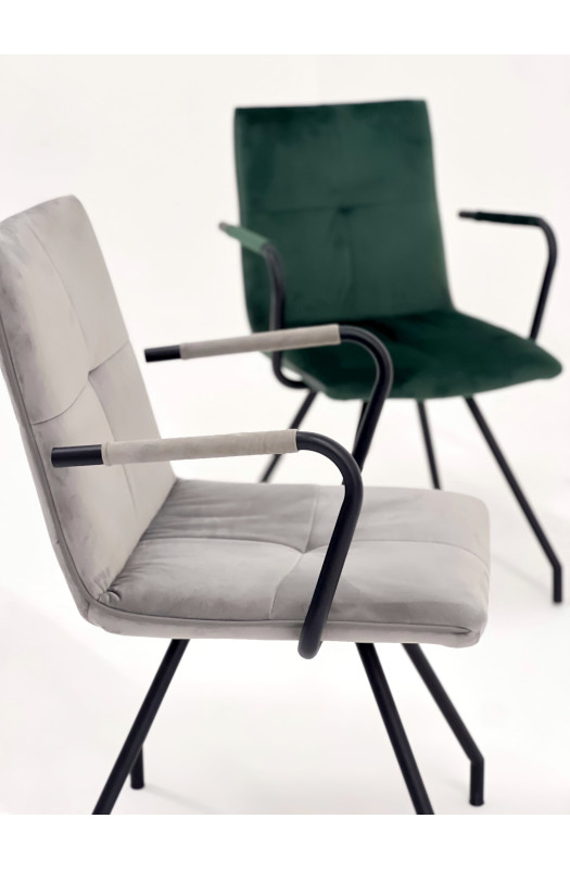 Оригінальний стілець в стилі ретро Стілець Chester Grey допоможе створити стильний і комфортний дизайн інтер'єру. Модель виконана в сірому відтінку. М'яке сидіння гармонійно доповнює стійкий каркас в чорному кольорі. Металеві підлокітники підвищують рівень комфортності стільця. Виріб можна використовувати для меблювання кухні або їдальні. Оригінальний дизайн, дозволяє застосовувати модель в різних напрямках: вінтаж, класика, модерн. Створіть затишний простір з ефектним стільцем Chester. * Фактичний колір меблів може відрізнятися від фото, в залежності від налаштувань монітора.