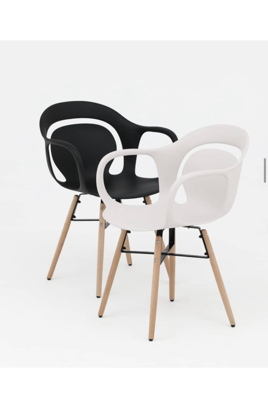 Практичний стілець з сучасним дизайном Dick Biege - стілець для оригінальних дизайнерських рішень. Незвичайна форма і сучасні матеріали, дозволяють використовувати цю модель в різних дизайнах, наприклад, авангард, хай-тек або фьюжн. Сидіння, спинка та підлокітники виконані з якісного поліпропілену. Використання ніжок з натурального дерева з металевими елементами, надає виробу особливий шарм. Dick ідеально підходить для меблювання їдальні або вітальні. Модель легко очищається від будь-яких забруднювачів, а також має високий рівень стійкості до зношування. * Фактичний колір меблів може відрізнятися від фото, в залежності від налаштувань монітора.