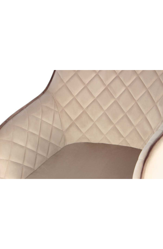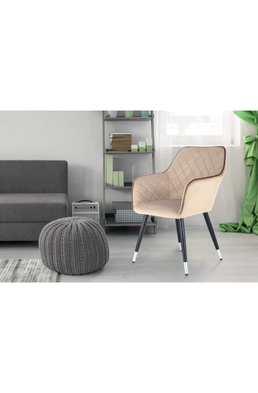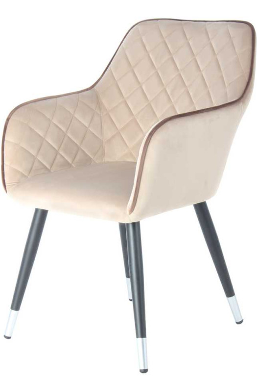 Оригінальна крісло для сучасного інтер'єру Стильне крісло Evan Beige / Brown відмінне рішення для створення дизайну і в сучасному, і в класичному стилі. Виріб виконаний в бежевому кольорі. Контрастний кант додає йому оригінальне звучання. Стійкі металеві ніжки чорного кольору органічно завершують композицію. Модель виконана в оксамитової, приємною на дотик оббивці. У наповненні використовується щільний пінополіуретан, який дарує м'якість і комфорт. Створіть затишну зону відпочинку в їдальні, кухні або вітальні за допомогою крісла Evan. Також модель можна використовувати для меблювання зони очікування в офісі. * Фактичний колір меблів може відрізнятися від фото, в залежності від налаштувань монітора.