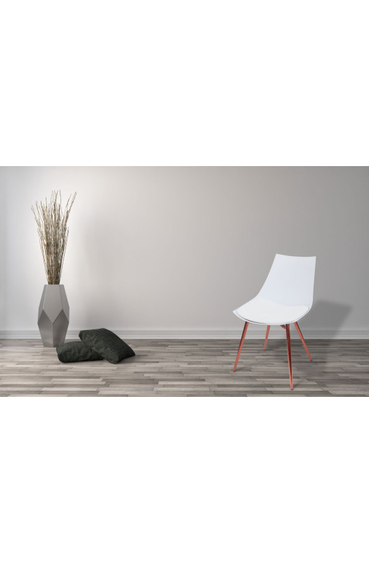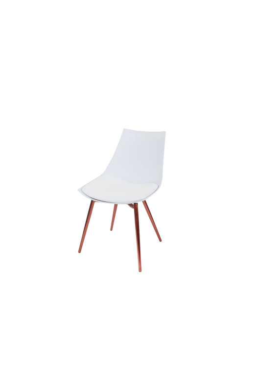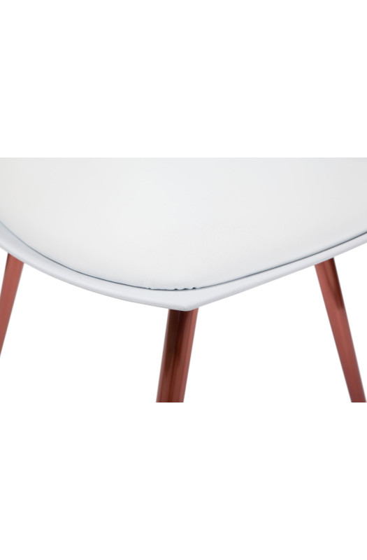 Елегантний стілець для обіднього залу Стильний, ергономічний стілець Nik White / Copper, ідеально доповнить кухню або їдальню в сучасному стилі. Зручне сидіння з оббивкою з екокожі, а також металеві ніжки в кольорі Copper створюють гармонійний дизайн. Модель ідеально підходить для інтер'єрів в стилі хай-тек, фьюжн і мінімалізм. Наповнення сидіння виконано з еластичного пенополіуератна, що надає йому максимальну комфортабельність. Модель відрізняється практичністю і легко чиститься від забруднень. Nik стане відмінним доповненням кухні або їдальні. * Фактичний колір меблів може відрізнятися від фото, в залежності від налаштувань монітора.