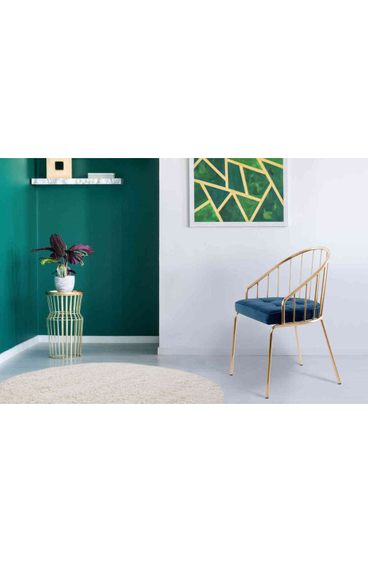 М'яке сидіння в приємній на дотик оббивці створює відчуття комфорту і дозволяє розслабитися. Модель виконана в темно-синьому кольорі з металевим каркасом в рожевому відтінку.