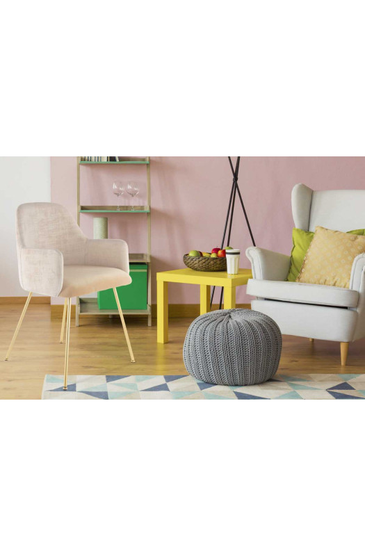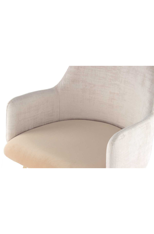 Дизайнерське крісло для комфортного відпочинку Ексклюзивне крісло Rodeo Ivory / Biege створить в інтер'єрі атмосферу затишку. Приємне на дотик, оксамитове сидіння з м'яким наповненням з пінополіуретану, занурює в стан розслабленості. Оббивка виконана в теплих відтінках беж і слонової кістки. Зручна спинка і підлокітники підвищують рівень комфорту. Металеві ніжки в золотому кольорі не тільки надають виробу елегантні ноти, а й підвищують стійкість. Крісло Rodeo стане прекрасним рішенням для створення зони відпочинку в вітальні або бібліотеці, оформленої в сучасному стилі. * Фактичний колір меблів може відрізнятися від фото, в залежності від налаштувань монітора.