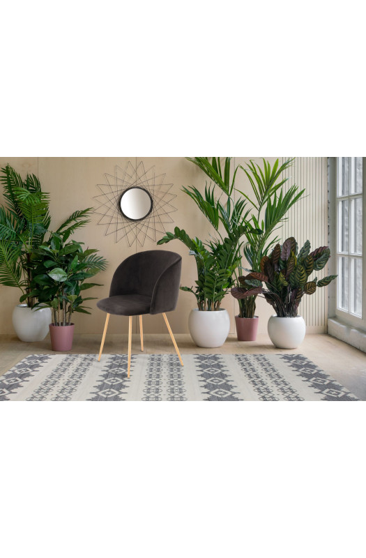 Стілець для комфортного відпочинку Сучасний дизайнерський стілець Selin Black вражає своєю комфортабельністю і оригінальністю. Модель стане ідеальним рішенням для дизайну модерн, ретро, а також скандинавського стилю. Поєднання чорного кольору і неймовірних тактильних відчуттів, дозволяє зануритися в стан розслабленості. Металеві ніжки стилізовані під дерево, що надає виробу особливий шарм. М'який пінополіуретан в наповненні, а також форма спинки і сидіння забезпечують максимальну комфортабельність крісла. Selin відмінно підходить для інтер'єру вітальні, їдальні або кухні. * Фактичний колір меблів може відрізнятися від фото, в залежності від налаштувань монітора.