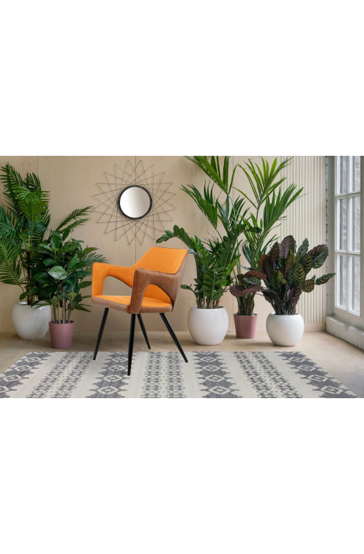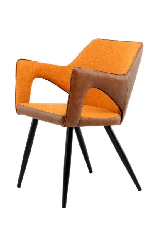 Дизайнерський стілець для стильного інтер'єру Slem Orange - додасть у ваш інтер'єр екстравагантні ноти. Стілець в помаранчевому кольорі гармонійно доповнений металевими опорами в чорному кольорі. Неймовірна м'якість сидіння і приголомшлива, приємна на дотик оббивка з екокожі занурюють в стан розслабленості. Модель відрізняється практичністю і довговічністю. Металеві ніжки забезпечують хорошу стійкість. Якісні матеріали гарантують легкість чищення. Slem підходить для меблювання вітальні, їдальні або вітальні. * Фактичний колір меблів може відрізнятися від фото, в залежності від налаштувань монітора.