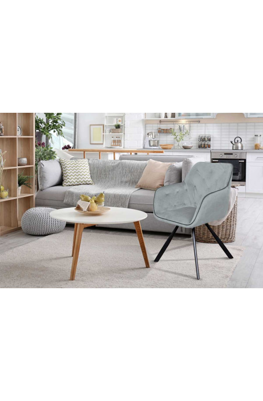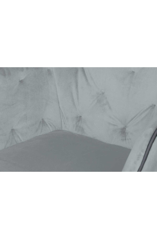 Комфортабельне крісло для затишного будинку Елегантний дизайн крісла Tokyo Grey привертає увагу і створює затишну атмосферу в кімнаті. Ергономічна форма, приємна на дотик оббивка і м'який пінополіуретан в наповненні роблять модель неймовірно комфортною. Декоративні гудзики і кант підкреслюють оксамитову текстуру тканини. Металеві ніжки в чорному відтінку додають виробу шарм. Крісло стане ідеальним доповненням вітальні, їдальні і навіть кухні. Виріб допоможе створити комфортний острівець для відпочинку. Елегантний дизайн дозволяє інтегрувати модель в різні стилі - класичний, контемпорарі, модерн. Освіжіть інтер'єр з оригінальним кріслом Tokyo. * Фактичний колір меблів може відрізнятися від фото, в залежності від налаштувань монітора.