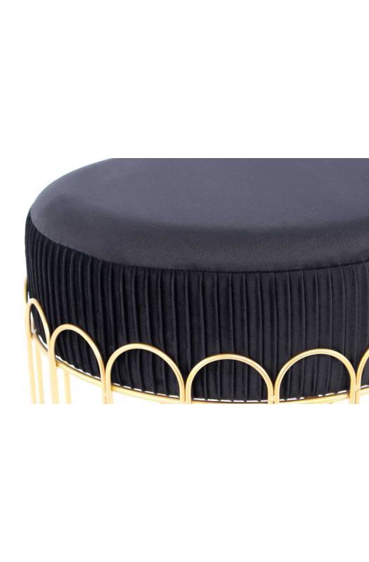 Ефектний табурет з металевим каркасом Оригінальний табурет Drum Black / Gold - стильне рішення, яке привнесе східні ноти в дизайн інтер'єру. Приємна на дотик фактура тканини, занурює у відчуття релаксу і спокою. Оббивка виконана в лаконічному чорному відтінку. Благородний метал, філігранно виготовленого корпусу в золотому кольорі, надає цій моделі індивідуальність. Drum ідеально доповнить журнальний або кавовий столик. Завдяки компактним розмірам, модель підходить навіть для невеликих приміщень. Табурет Drum привносить в інтер'єр відчуття розкоші і комфорту. Виріб прекрасно поєднується з сучасною, класичною та східній меблями. * Фактичний колір меблів може відрізнятися від фото, в залежності від налаштувань монітора.