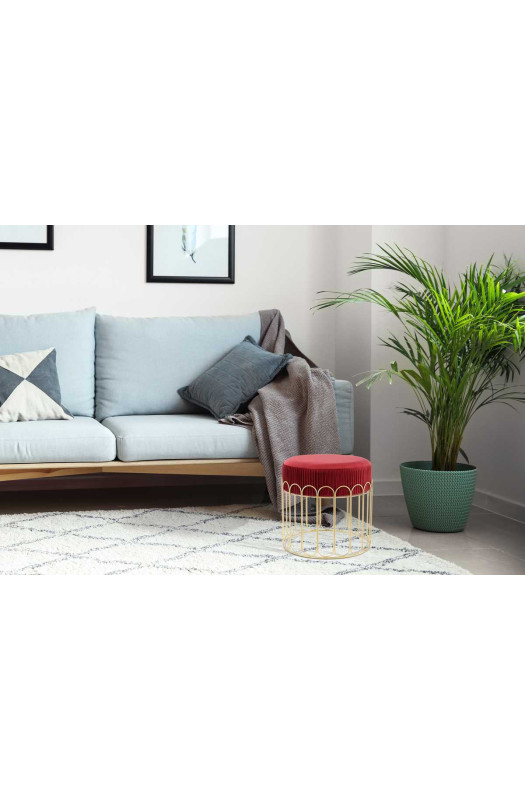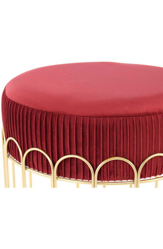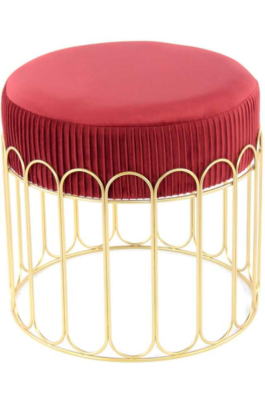Ефектний табурет з металевим каркасом Оригінальний табурет Drum Bordeaux / Gold - стильне рішення, яке привнесе східні ноти в дизайн інтер'єру. Приємна на дотик фактура тканини, занурює у відчуття релаксу і спокою. Оббивка виконана в яскравому вишневому відтінку. Благородний метал, філігранно виготовленого корпусу в золотому кольорі, надає цій моделі індивідуальність. Drum ідеально доповнить журнальний або кавовий столик. Завдяки компактним розмірам, модель підходить навіть для невеликих приміщень. Табурет Drum привносить в інтер'єр відчуття розкоші і комфорту. Виріб прекрасно поєднується з сучасною, класичною та східній меблями. * Фактичний колір меблів може відрізнятися від фото, в залежності від налаштувань монітора.