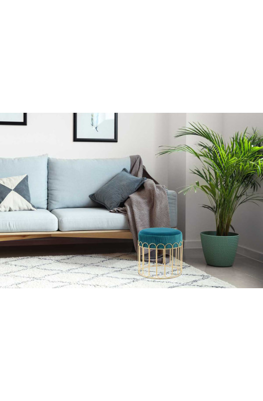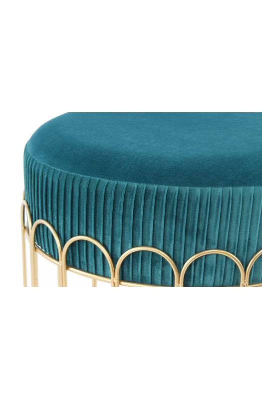 Ефектний табурет з металевим каркасом Оригінальний табурет Drum Petrol / Gold - стильне рішення, яке привнесе східні ноти в дизайн інтер'єру. Приємна на дотик фактура тканини, занурює у відчуття релаксу і спокою. Оббивка виконана в насиченому бірюзовому відтінку. Благородний метал, філігранно виготовленого корпусу в золотому кольорі, надає цій моделі індивідуальність. Drum ідеально доповнить журнальний або кавовий столик. Завдяки компактним розмірам, модель підходить навіть для невеликих приміщень. Табурет Drum привносить в інтер'єр відчуття розкоші і комфорту. Виріб прекрасно поєднується з сучасною, класичною та східній меблями. * Фактичний колір меблів може відрізнятися від фото, в залежності від налаштувань монітора.