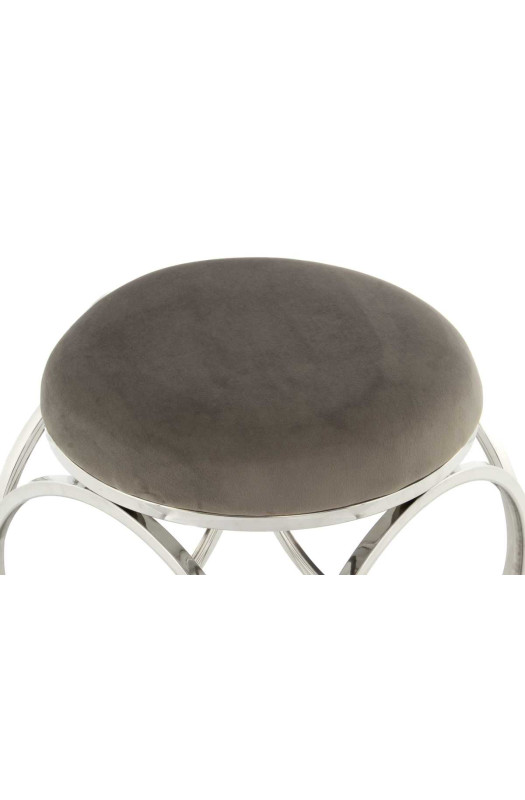 Табурет з елегантним дизайном Стильний, витончений зовнішній вигляд табурета Glow Grey / Silver створює атмосферу розкоші і комфорту. Оригінальний металевий каркас виконаний з декількох елементів, які формують гармонійну композицію. М'яке сидіння виготовлено з приємною на дотик бархатистою тканини, а для наповнення використовується якісний пінополіуретан. Класична кругла форма і оптимальна висота табурета дозволяють поставити його поряд з витонченим журнальним столиком. Компактні розміри вироби дають можливість використовувати його навіть для меблювання невеликих кімнат. Glow відмінно підходить для вітальні, передпокої або спальної кімнати. Виріб прекрасно інтегрується і в сучасні, і в класичні дизайни інтер'єру. * Фактичний колір меблів може відрізнятися від фото, в залежності від налаштувань монітора.
