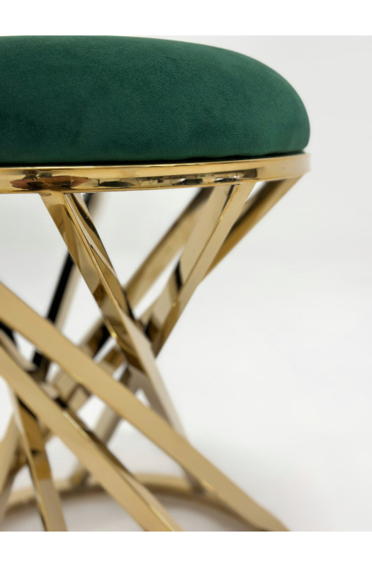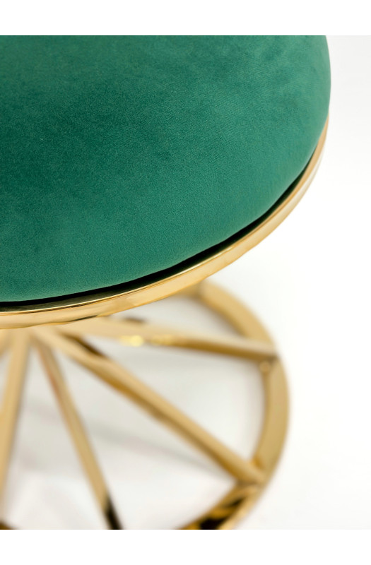 Елегантний табурет для сучасного інтер'єру Оригінальний табурет Infinity Green / Gold - ідеальне рішення для інтер'єру в стилі хай-тек або контемпорарі. Особливість моделі - оригінальна, вигнута форма металевого каркаса. М'яке сидіння, виконане в смарагдовому відтінку, органічно доповнює загальний зовнішній вигляд табурета. Модель підходить і для сучасних, і для класичних дизайнів, додаючи розкішні ноти в інтер'єр. Виріб відмінно підходить для меблювання вітальні або спальні. Завдяки оптимальній висоті, Infiniti можна ставити біля кавового або журнального столика. * Фактичний колір меблів може відрізнятися від фото, в залежності від налаштувань монітора.