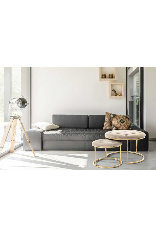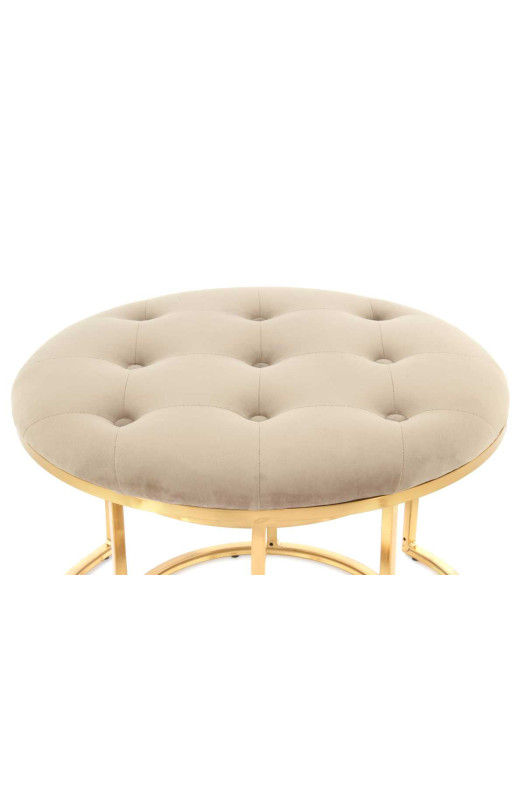 Набір табуретів в стилі ретро Комплект табуретів Twins Taupe / Gold ідеальне рішення для різних вантажних інтер'єрів. Поєднання елегантного металевого каркаса в золотому кольорі і м'якого сидіння в чорному відтінку виглядає гармонійно. Приємна на дотик тканина оббивки створює ідеальні умови для комфортного відпочинку. Оригінальний дизайн набору привертає увагу. Завдяки особливостям форми табуретів, їх можна з'єднати разом, що дозволить заощадити місце. Стриманий, елегантний дизайн, дає можливість легко поєднувати табурети Twins з меблями в різних стилях. * Фактичний колір меблів може відрізнятися від фото, в залежності від налаштувань монітора.